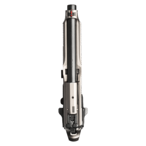 The 92X Performance offers the possibility to regulate the pre-travel and extra travel via two screws located inside the frame, next to the upper section of the magazine well. It has an appealing and refined dual tone look, obtained using a Nistan finish to treat the frame surface and slide with the contrast provided by the black burnished barrel.
