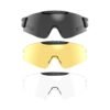 Enhance your shooting experience with Intermask Shooting Glasses. These wrap-around glasses feature interchangeable lenses to maximize target visibility in varying light conditions. Designed for comfort, they include rubber-coated temples with a metal core, an adjustable nose piece with silicone pads, and ergonomic, flexible temples. The glasses come with three pairs of lenses and a sweatband insert that boasts anti-fog ventilation holes. With UV 400 protection and the Beretta logo, these glasses are a must-have for any shooter.