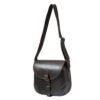 Leather cartridge bag with flap closure.