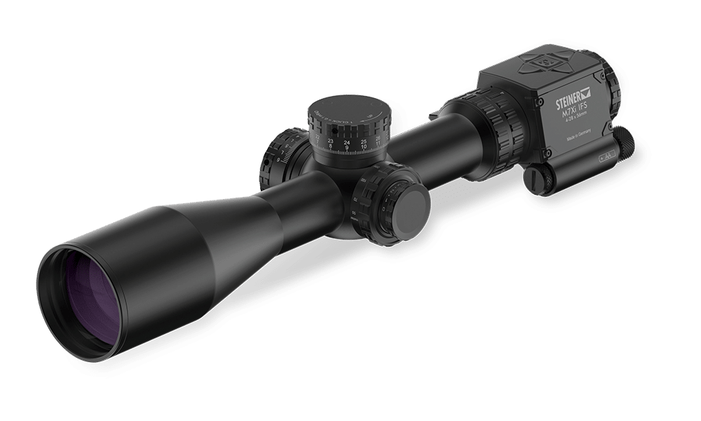 The Intelligent Firing Solution with integrated customizable display always provides all the important information in real time to the operator. The built in Ballistic Calculator and Sensor Suite determines the bullet point of impact in real time (temperature, air pressure, inclination, wind drift). Just turn the turrets until the distance and wind correction in the display matches the information provided by the spotter and you will be on target.